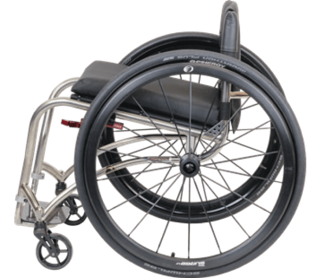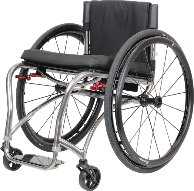 Developed as a successor to the Melrose Limited Edition day chair the Melrose Scorpion is the lightest titanium chair we have ever built. A 16” frame with the upholstery, forks and castors weighs only 3.9kg. Incorporating an under frame to keep it strong and flex free the new frame directs all your energy into motion with an effortless silky smooth ride. Lightweight fork pivots with alloy casters and lighter close weave ballistic upholstery complete the package.