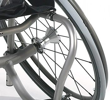 The Quickie All Court’s single-wing bumper is light, lean, and built to take on an aggressive basketball wheelchair game. The integrated fifth-wheel anti-tip, available as a single or double, allows you to shift your weight over the rear wheels, giving you an edge in manoeuvrability. The anti-tip brace locks out the rearward flex in the frame, giving you more power when you lean back to shoot over your competition.Titanium sports wheelchair frame option