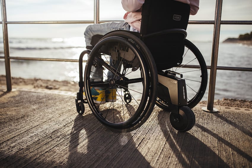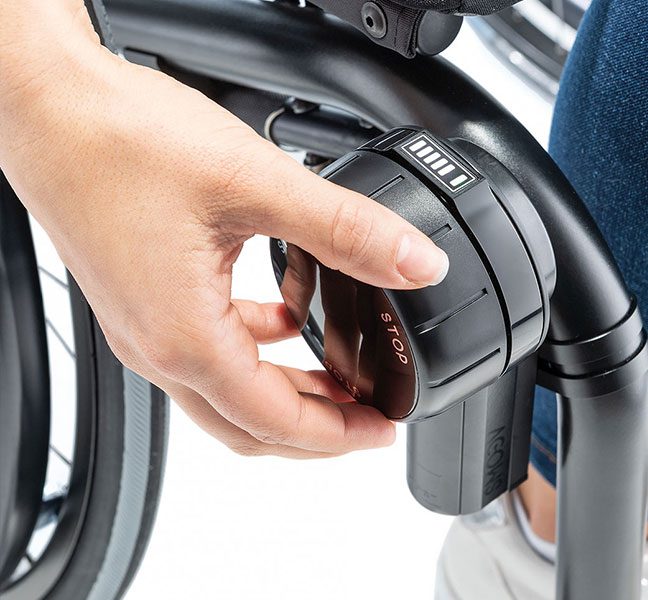 With the Invacare SMOOV One, you can convert your active wheelchair to a power chair that maintains a stable speed and lets you manoeuvre on different surfaces, including uneven terrains. SMOOV One comes in a range of about 20 km with 7.2 kg weight. It is equipped with a handy USB socket for charging – this makes charging easier, especially for active users.