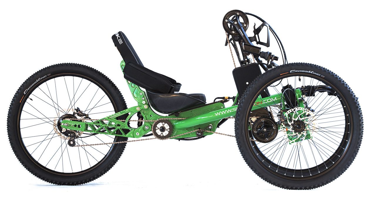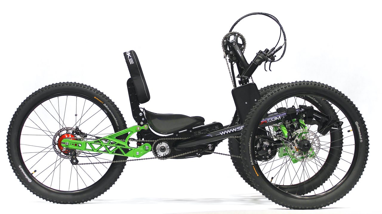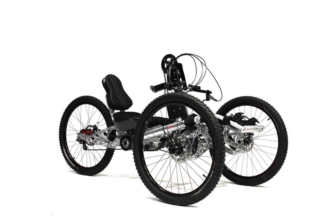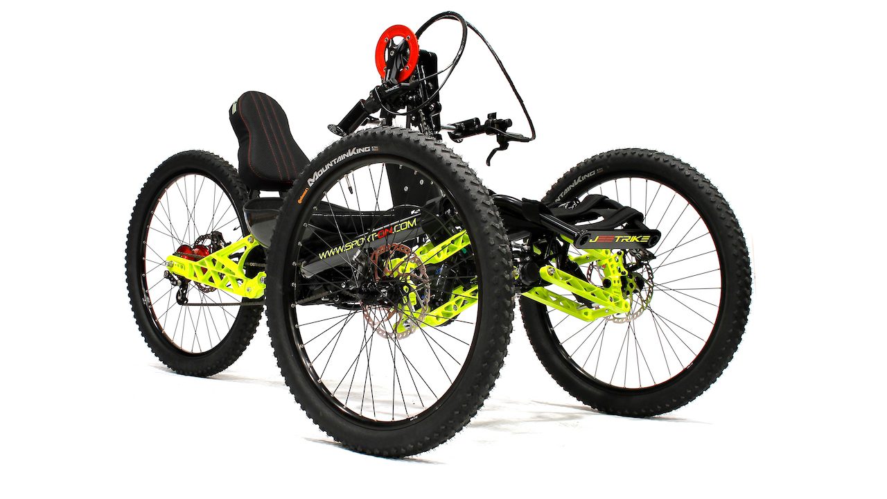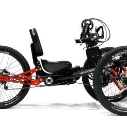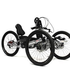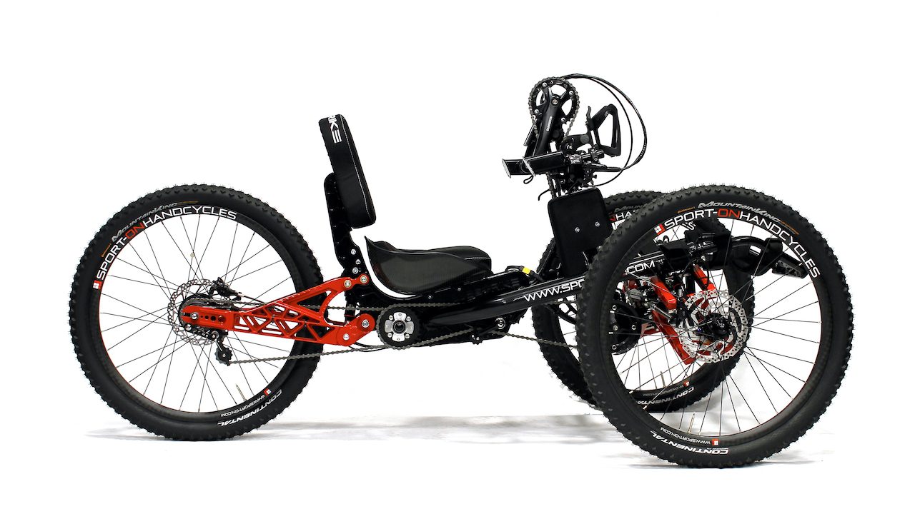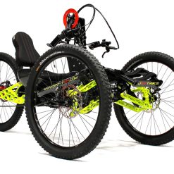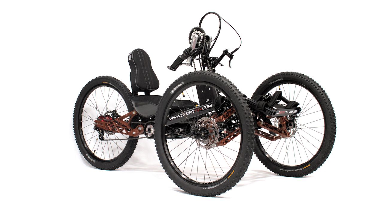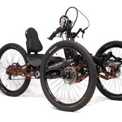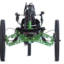 JEETRIKE Off-Road Handcycle, has an upright seating position, rear wheel drive, full independent suspension on all three wheels and manual or electric drive option to choose. Thanks to completely new 4-link suspension, we were able to achieve really short wheelbase to increase the rear wheel grip and the frame stiffness, in the same time the turning radius has decreased. JEETRIKE is suitable for nearly all persons with different type of disability, including the people with quadriplegia.