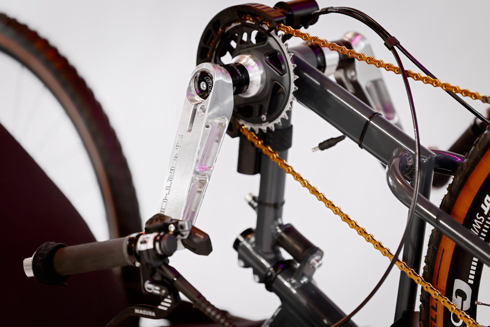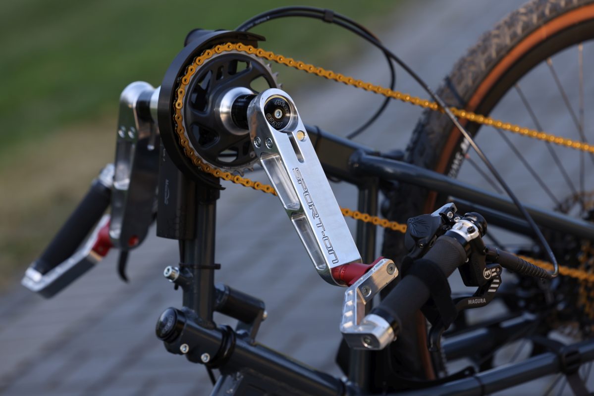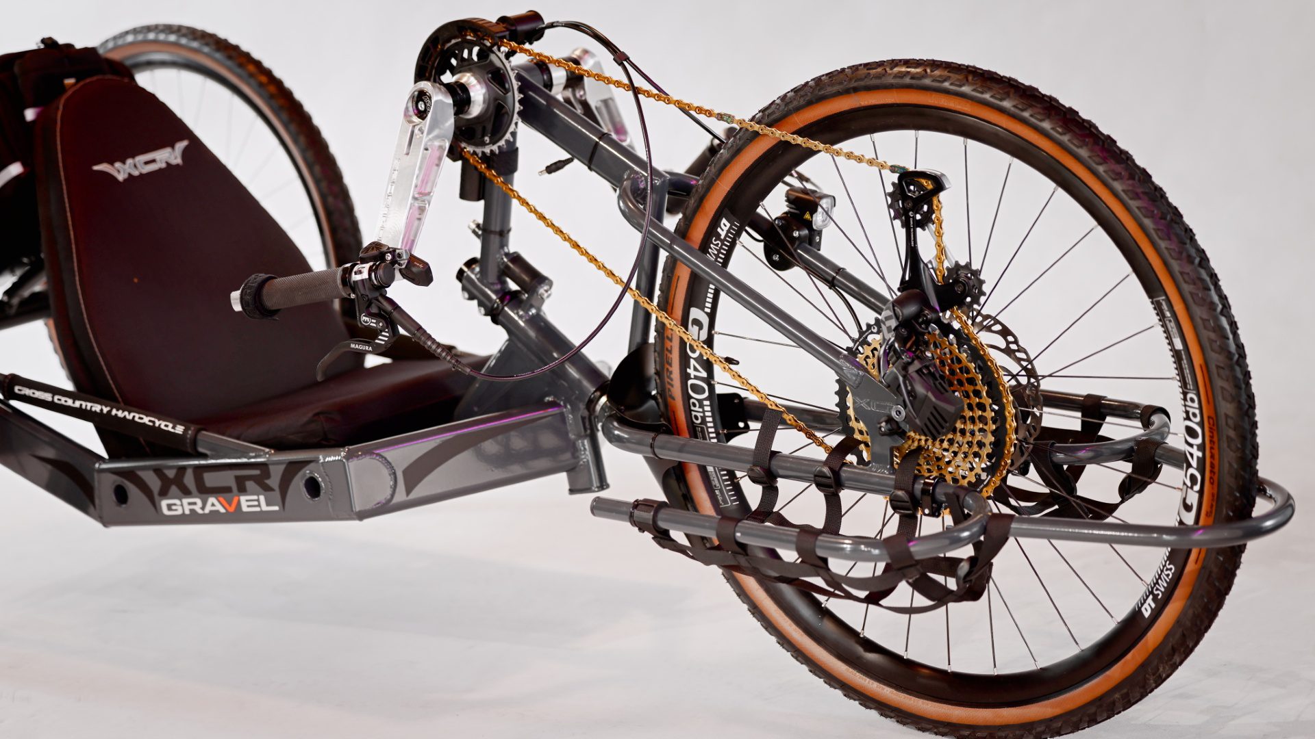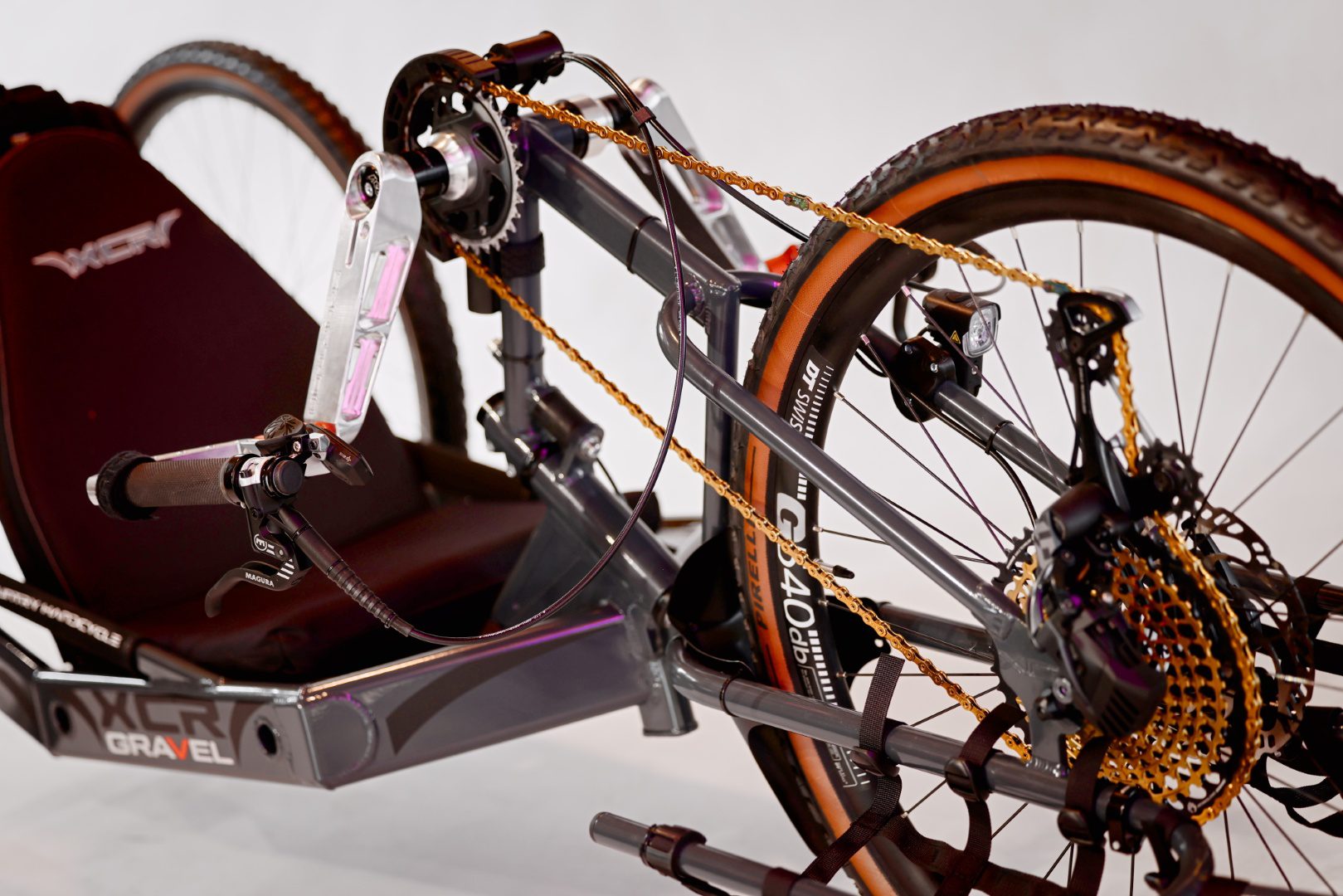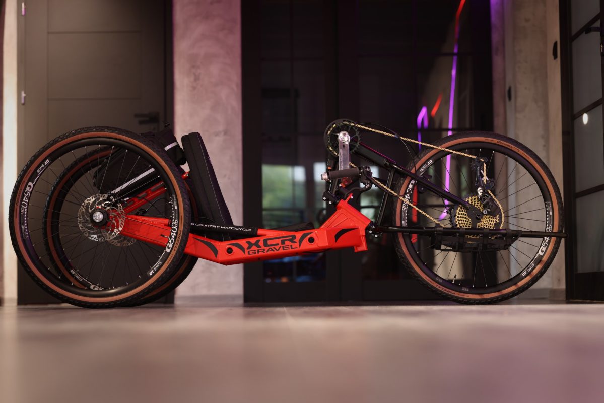 The world has been dominated by e-bikes, but we know that many of you need a light, fast and agile handbike that will take you further without being dependent on battery power. The XCR GRAVEL was created for this very reason and we believe that it will perfectly meet the expectations of the most demanding users who want to rely solely on the power of their muscles. On board you will find a drivetrain based on the electronic Sram Eagle AXS group, a new Sport-On crank with adjustable width, ergonomic hand pedals, a cockpit with a chainring cover and a mount for a bike computer, front and rear lights, hydraulic Magura brakes, a front mudguard and a rear bag with an integrated bottle cage and expandable side panniers. The XCR GRAVEL will be equipped with top-class components as standard and will be ready to meet not only difficult challenges but also everyday needs without any limitations.